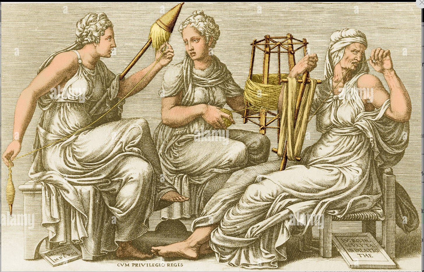 Meanwhile, fate in the classical sense is personal. The three Fates in Greek mythology are named Clotho, Lachesis, and Atropos. They are responsible for spinning, measuring, and cutting the thread of life for each individual. But we can consider fate in a collective sense, as in society and civilization.